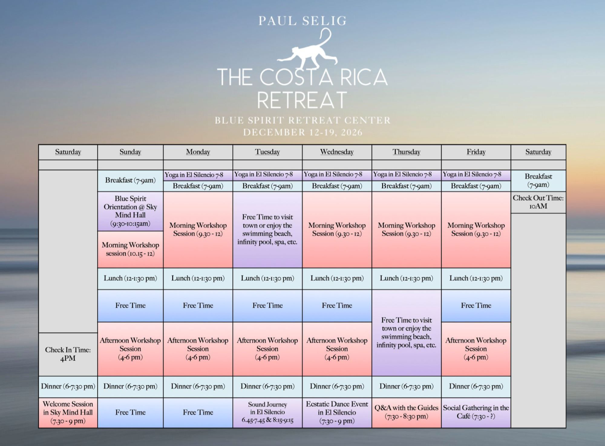Join award-winning author & channel Paul Selig for a weeklong channeled retreat in Costa Rica, December 12-19, 2026, where you'll work directly with his Guides and their practical program for achieving personal growth and overcoming the obstacles that are hindering you on the way.