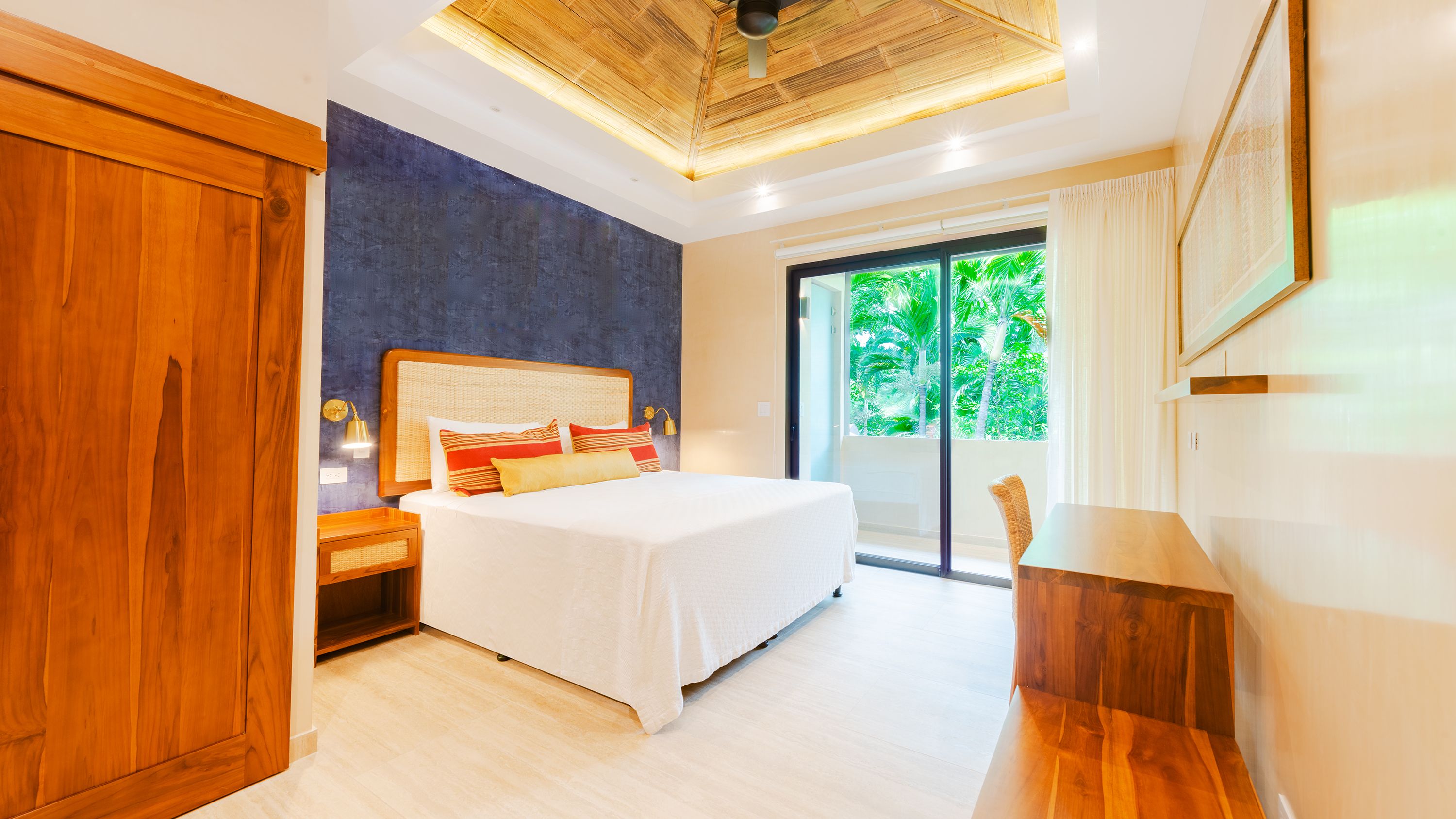 The contemporary Garden Suite King Rooms are the newest additions to the property. Featuring a King Bed and a balcony overlooking the jungle, they provide privacy and elegance and are just a 1-2 minute walk to the main building and a 5-minute walk to the beach.Β