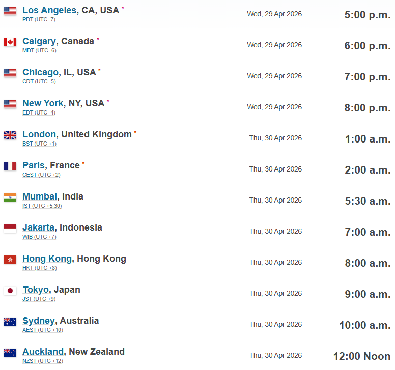 Session Start Times Around the World